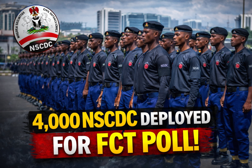 The Nigeria Security and Civil Defence Corps (NSCDC), Federal Capital Territory Command, has deployed 4,000 personnel across Abuja to provide security for the forthcoming Area Council elections, reinforcing efforts to ensure a peaceful and credible electoral process.